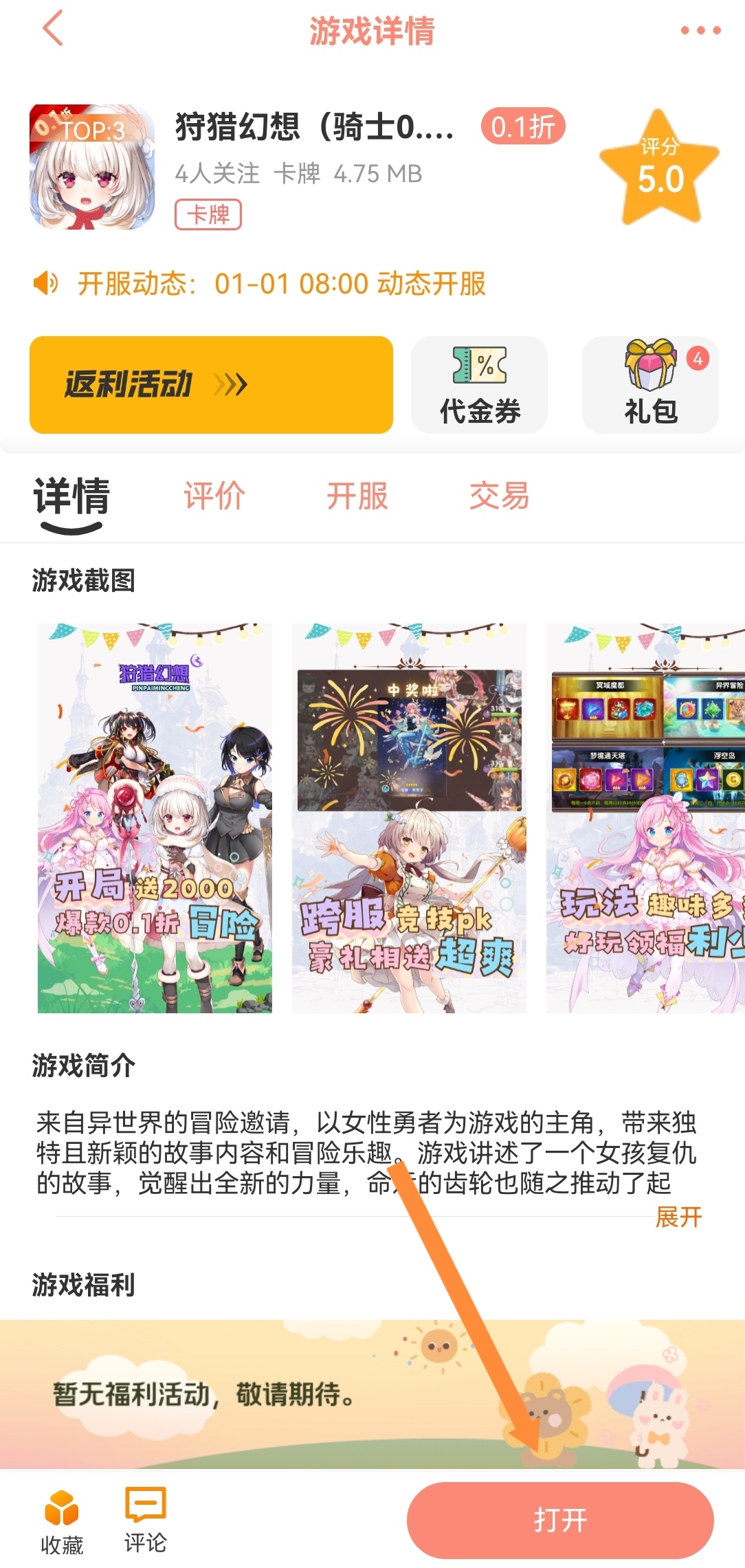 1:我们先打开APP下载狩猎幻想这款游戏。(橙色箭头所指位置)