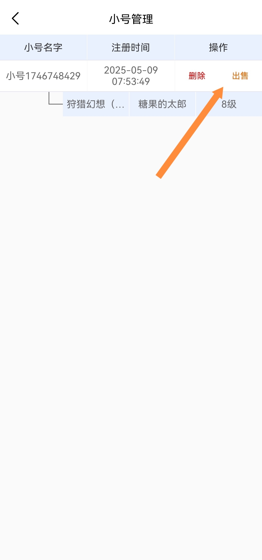8:选择自己要出售的账号点击橙色箭头的出售选项。